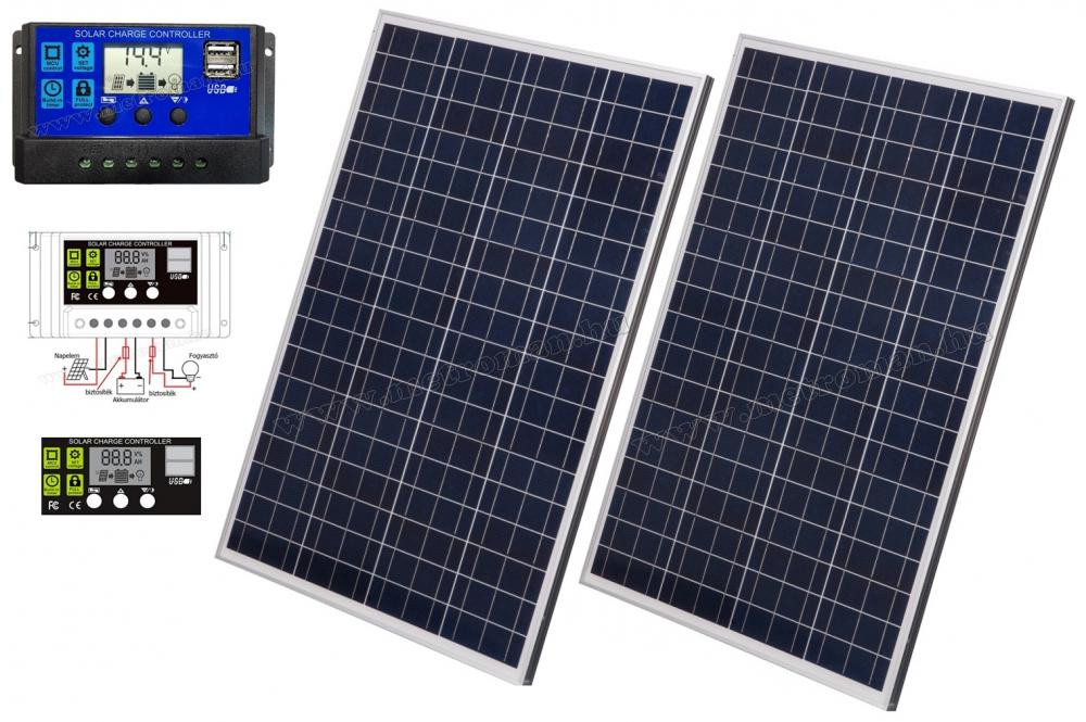 12V 2X110 Watt napelemes töltő szett töltésvezérlővel Poly Solar MPV-220W-30/10A-PWM