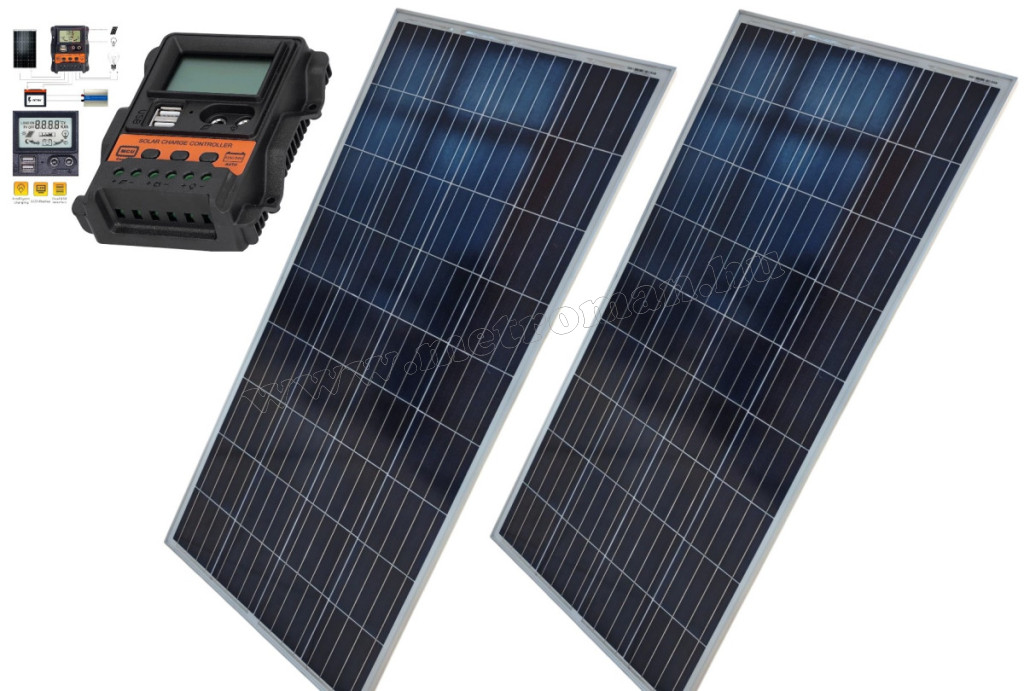 12V 2x150 Watt napelemes töltő szett töltésvezérlővel Poly Solar MPVPOLY300W-1688-PWM