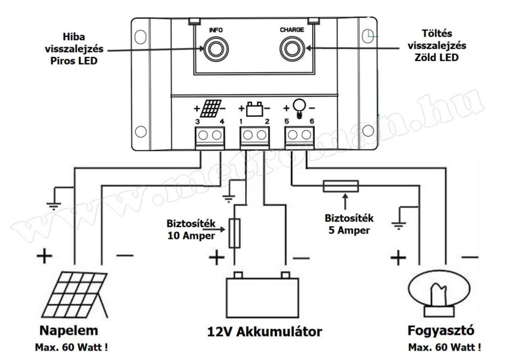 • Maximális napelem vagy terhelési áram: 5A