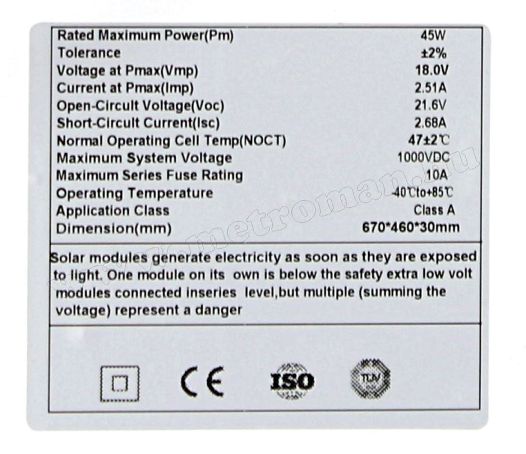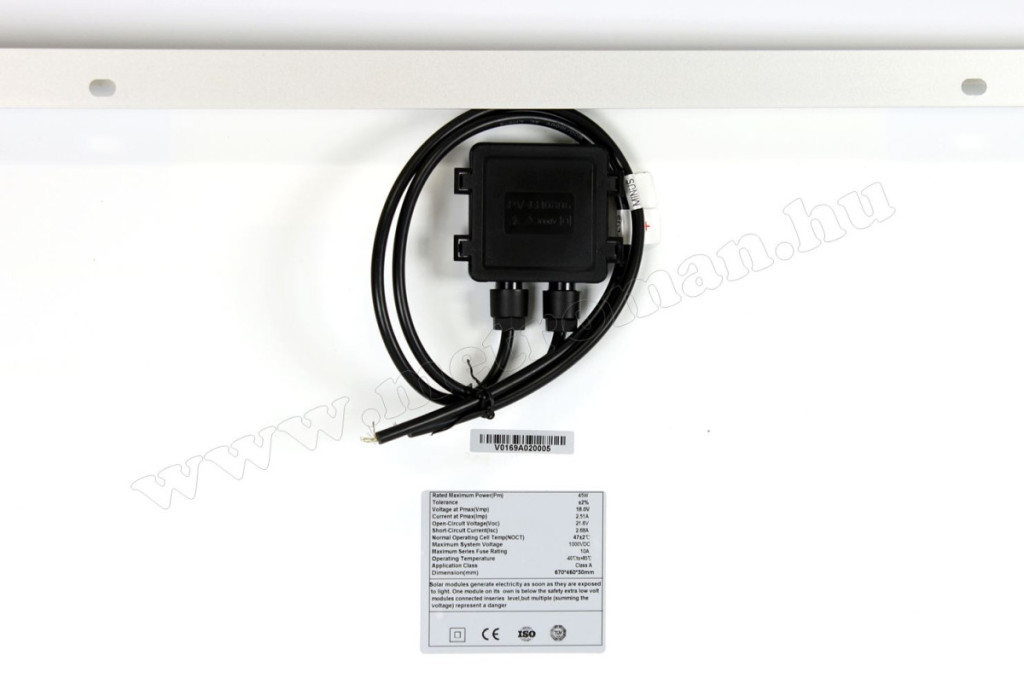 - 12 V / 45 Wattos Polikristályos napelem modul, masszív, eloxált alumínium kerettel