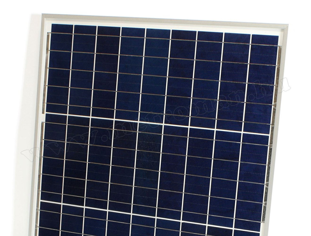 Polikristályos napelem panel, masszív, eloxált alumínium kerettel. Kitűnően használható háztetőkön , lakókocsikon, lakóautókon, kempingezéshez, hajókon, hétvégi házakhoz, villanypásztorokhoz, világításhoz stb.