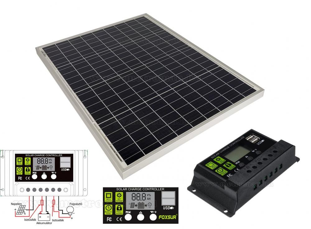 12V 50 Watt napelemes töltő szett töltésvezérlővel Poly Solar MP-50W-30/10A-PWM