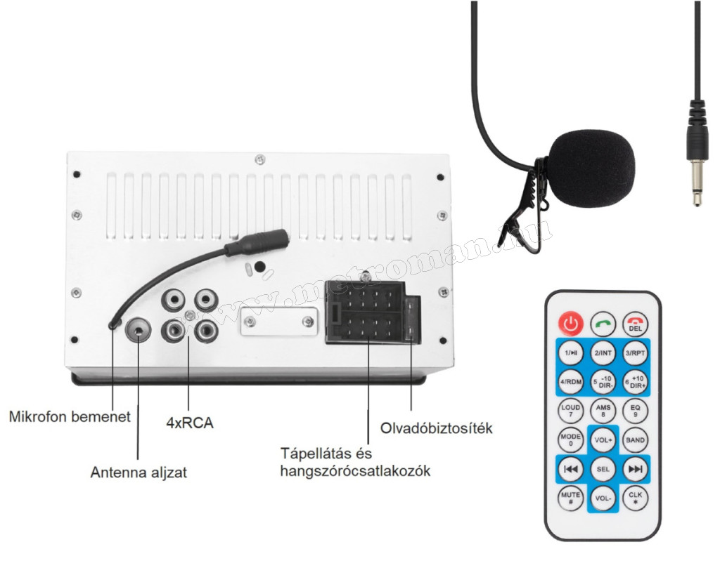 A beépített és külső mikrofon segítségével a csengőhang és a beszélgetés is az autó hangszóróin keresztül szólal meg, így még a forgalmas utakon is maximális biztonságban maradhat. A különféle zenei beállítások, mint a magas/mély hangszín szabályozása, loudness és EQ funkció, lehetővé teszik, hogy a zenei élményt az Ön ízléséhez igazítsa. A készülék AUX bemenettel is rendelkezik, így hordozható készülékeket is könnyedén csatlakoztathat. Az állítható színű és fényerőjű gomb-háttérvilágítás pedig garantálja, hogy mindig stílusosan és kényelmesen használhassa a készüléket.