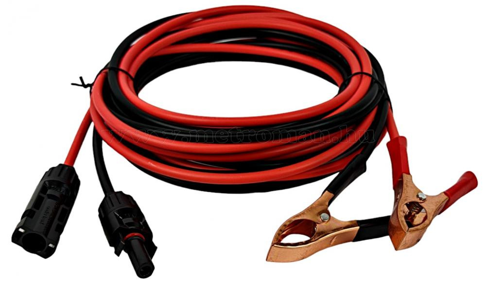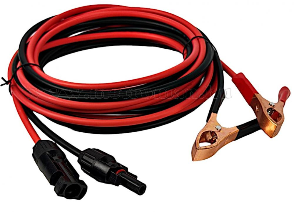 4 méteres kábel napelemekhez MC4 csatlakozóval és akkumulátor csipesszel