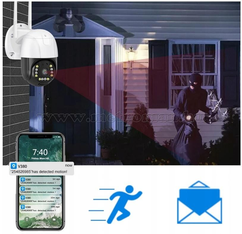 4G mobilinternet SIM kártyával használható, pár perc alatt egyszerűen telepíthető, vezeték nélküli IP biztonsági megfigyelő kamera, olyan helyekre is, ahol nincs Wifi. Telepítse az iPhone vagy Android V380PRO APP-ot telefonjára és néhány beállítás után nézze élőben vagy játssza vissza az SD kártyára rögzített felvételeket bárhonnan okostelefonjáról vagy számítógépről.