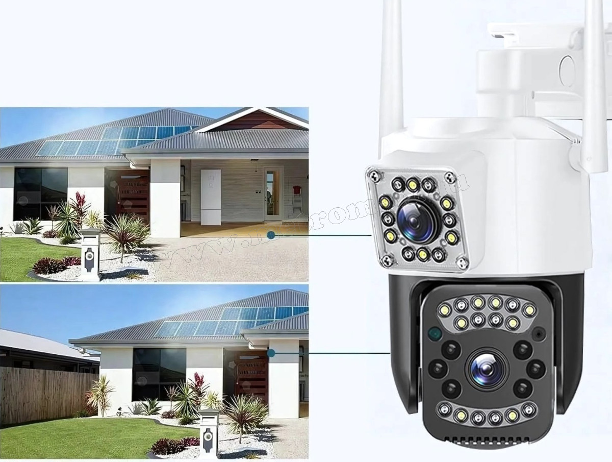 4G kültéri SIM kártyás kamera PTZ forgatható és fix 4G kamerával M6365-4G-PTZ DUAL-CAM V380PRO