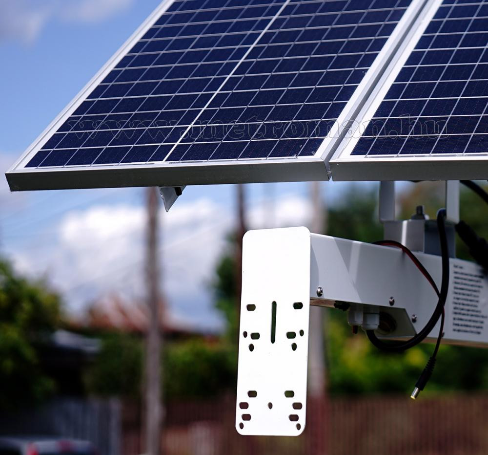 A napelem sokoldalú és többfunkciós tartókonzollal van felszerelve tartozékokkal a falra vagy magas oszlopra szereléshez. A térfigyelő kamera támogatása is többfunkciós, többféle bilinccsel a lehető legtöbb térfigyelő kamera modellhez.