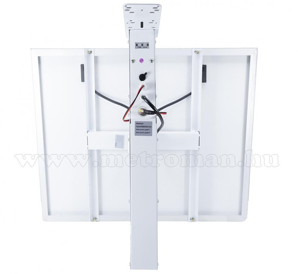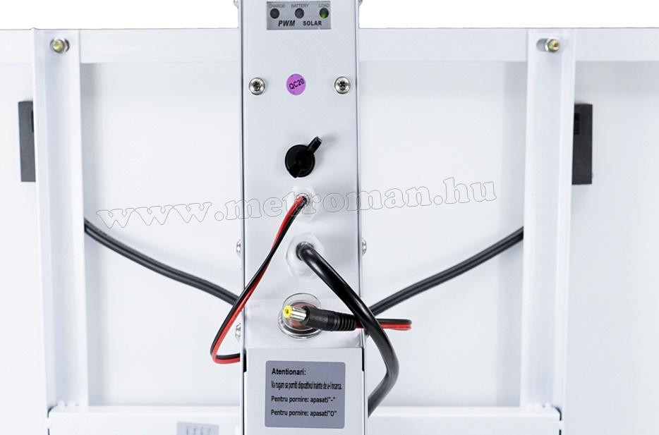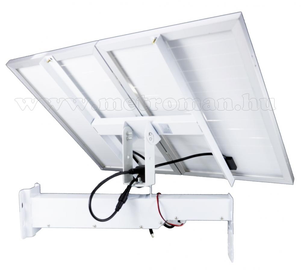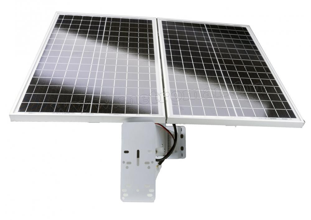 A maximum 60 W teljesítményű monokristályos napelem gyorsan feltölti az akkumulátort. Az akkumulátor töltöttségi szintjét a fém tartókonzolon lévő középső LED jelzi. Ha az akkumulátor töltöttsége kevesebb, mint 25%, a LED pirosra vált és villog. Amikor az akkumulátor teljesen feltöltődött, a LED zöldre vált és folyamatosan világít. A napelem panelt a lehető legjobb napsugárzást biztosító, D-i vagy DNy-i fekvésű területen ajánlott elhelyezni.