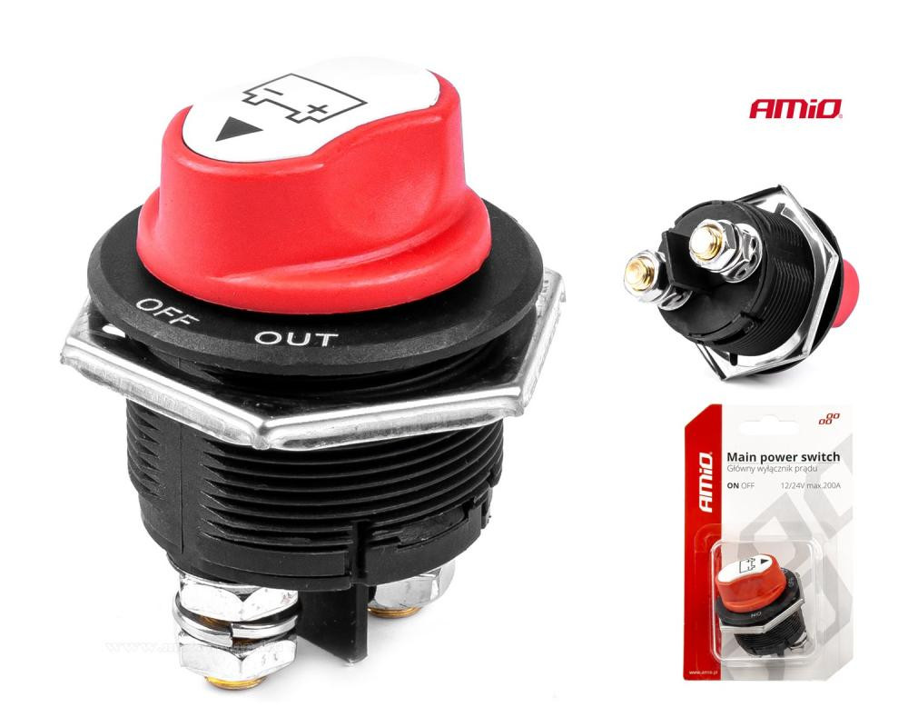 Autó, hajó, Lakókocsi 12/24 Voltos akkumulátor áramtalanító kapcsoló beépített 3 állású ON OFF OUT kapcsolóval.
