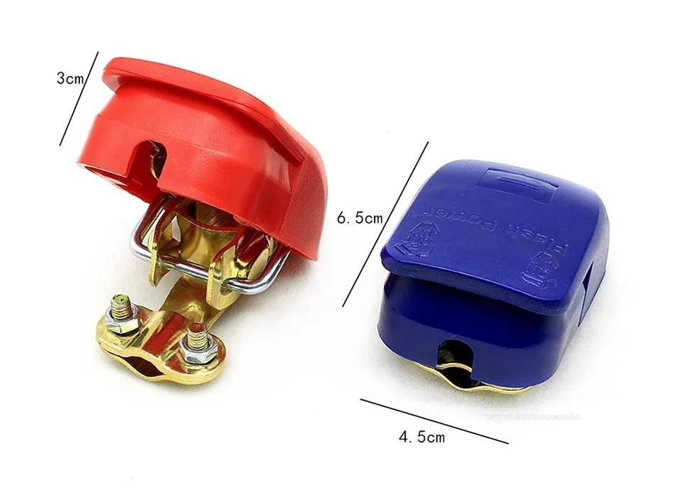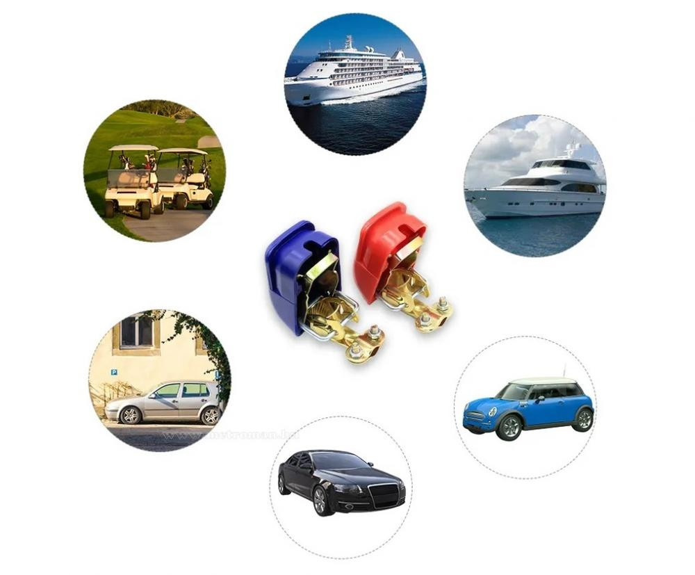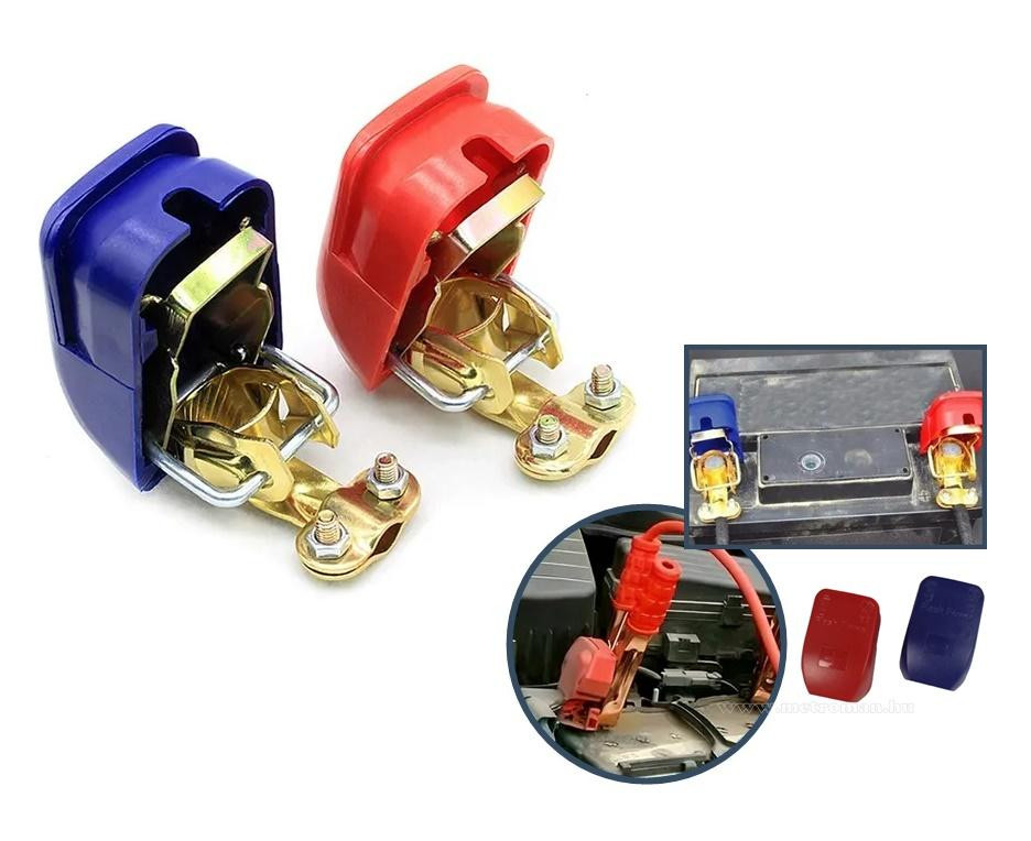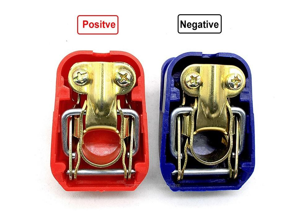 Akkumulátor gyorscsatlakozó szett, elsősorban lakókocsikhoz, hajókhoz, quadokhoz és kisebb indító áramú  gépjárművekhez.