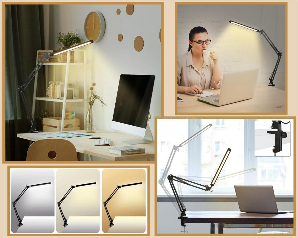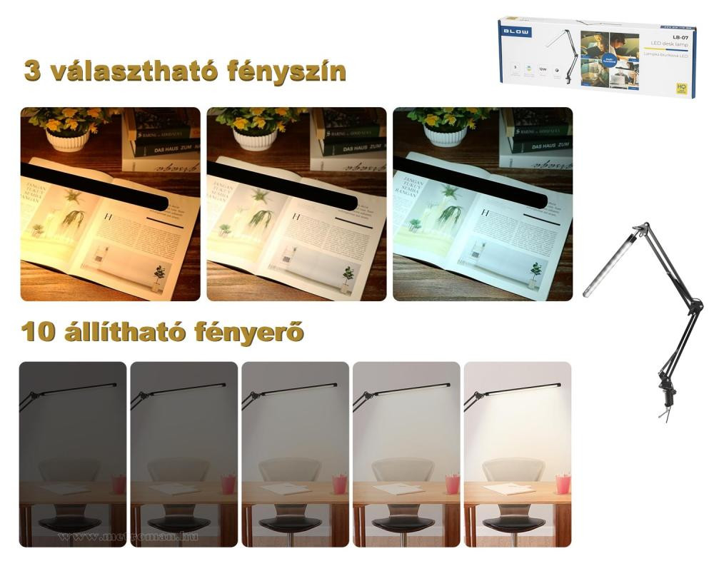 Modern állítható LED lámpa asztalra szorítható tartókonzollal. A hárormféle választható fényszín és 10 világítási mód segítségével mindig megfelelően meg tudja világítani a munkaterületet.
