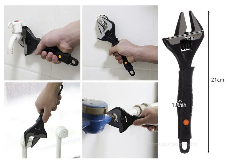 • SOKOLDALÚSÁG  - a széles, 0-35 mm-es beállítási tartománynak köszönhetően a villáskulcs a sokoldalúságot és a pontosságot ötvözi, így ideális szerszám otthoni használatra és professzionális műhelyben is. A fogantyú végén lévő lyuknak köszönhetően a szerszámot fel lehet akasztani, ami megkönnyíti a tárolást és kényelmes hozzáférést biztosít a munkahelyen. Ez a csavarkulcs egy praktikus, univerzális szerszám, amely egyesíti a tartósságot, az ergonómiát és a funkcionalitást, így minden szerszámkészlet nélkülözhetetlen eleme.