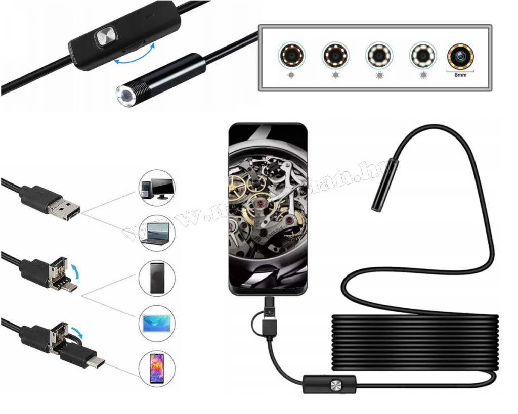 • Endoszkópkamera USB, microUSB USB-C csatlakozóval