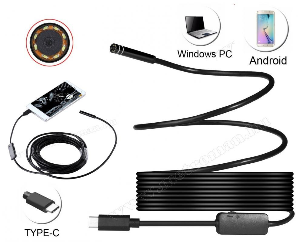 Android USB endoszkóp kamera, LED világítással, Mlogic MM-252B USB-C