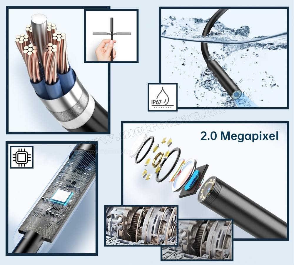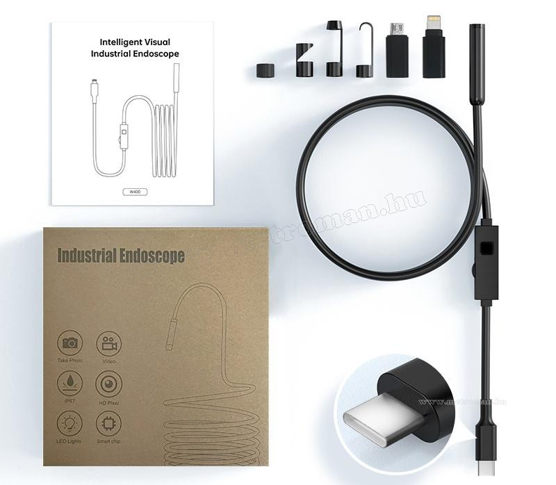 Ezzel a nagyfelbontású, vízálló endoszkóp kamerával telefonunkhoz kapcsolódva könnyedén vizsgálhatjuk a nehezen hozzáférhető vagy eldugott helyeket is.