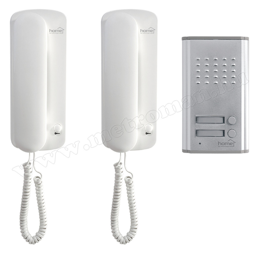 A kaputelefonszett két beltéri egységből és egy kültéri egységből áll, melyen két LED világítású névtábla található. Alkalmas a hagyományos kétvezetékes kaputelefon-rendszerek vagy ajtócsengők kiváltására, bővítésére, de akár újként is könnyen üzembehelyezhető. Lehetővé teszi, hogy két különböző lakásból fogadhassuk a látogatókat. A kapunyitó elektronika plusz tápellátás nélkül működtethető.