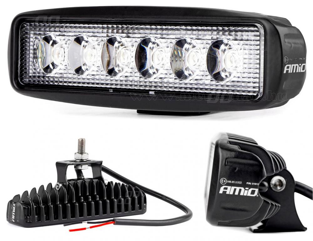 • 6 LED-es munkalámpa 160x43mm-es, terítő fény, felrögzítést biztosító szerelvénycsomaggal együtt.