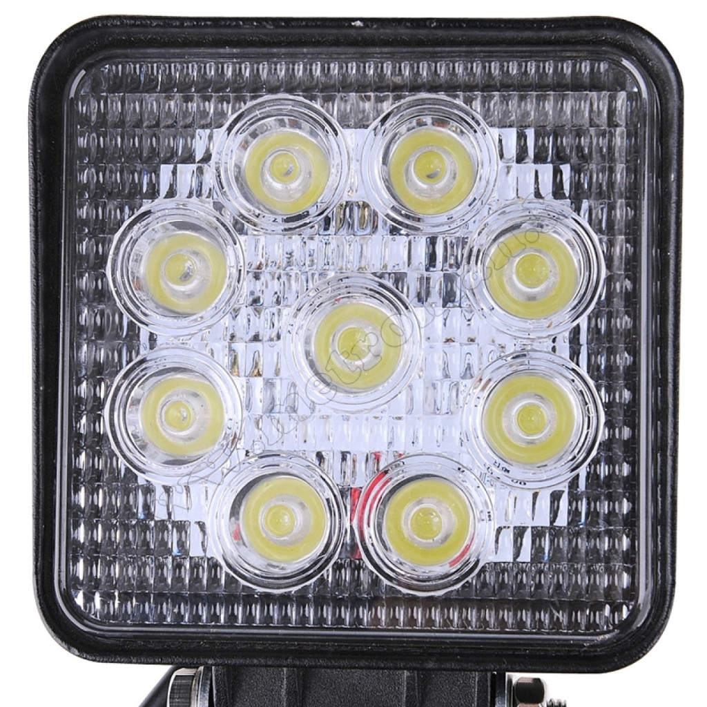 • 9 LED-es munkalámpa, szúró fény, felrögzítést biztosító szerelvénycsomaggal együtt.