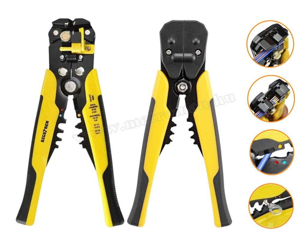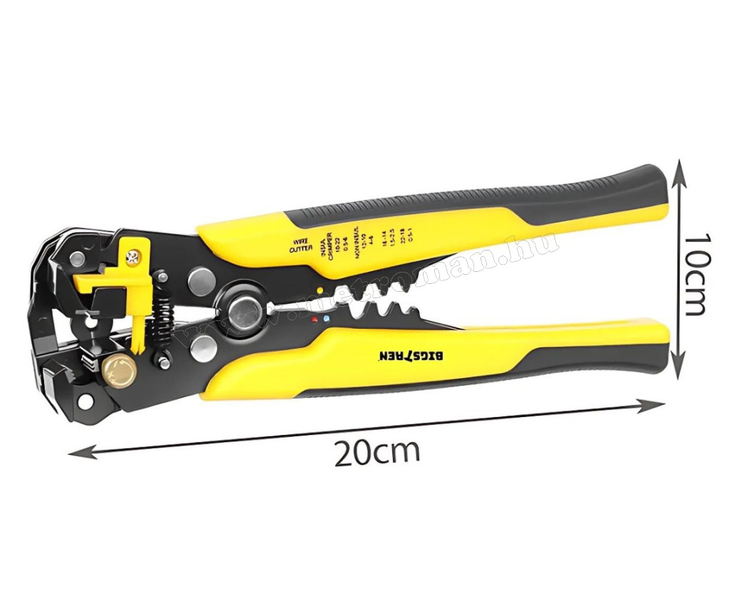 Az automata blankoló fogó használatával villámgyorsan és balesetmentesen csupaszíthatod le a vezetékeket. Használatával elkerülhető a vezetékek szakadása, a kábelek sérülése. A kábelcsupaszító a vékonyabb vezetékekkel is könnyedén megbirkózik. Pontosan vágja el a műanyagot, és távolítja el azt a kötegről. Szükség esetén állítható a művelet erőssége, és a lemetszendő burkolat hossza is attól függően, hogy milyen típusú kábelről van szó.