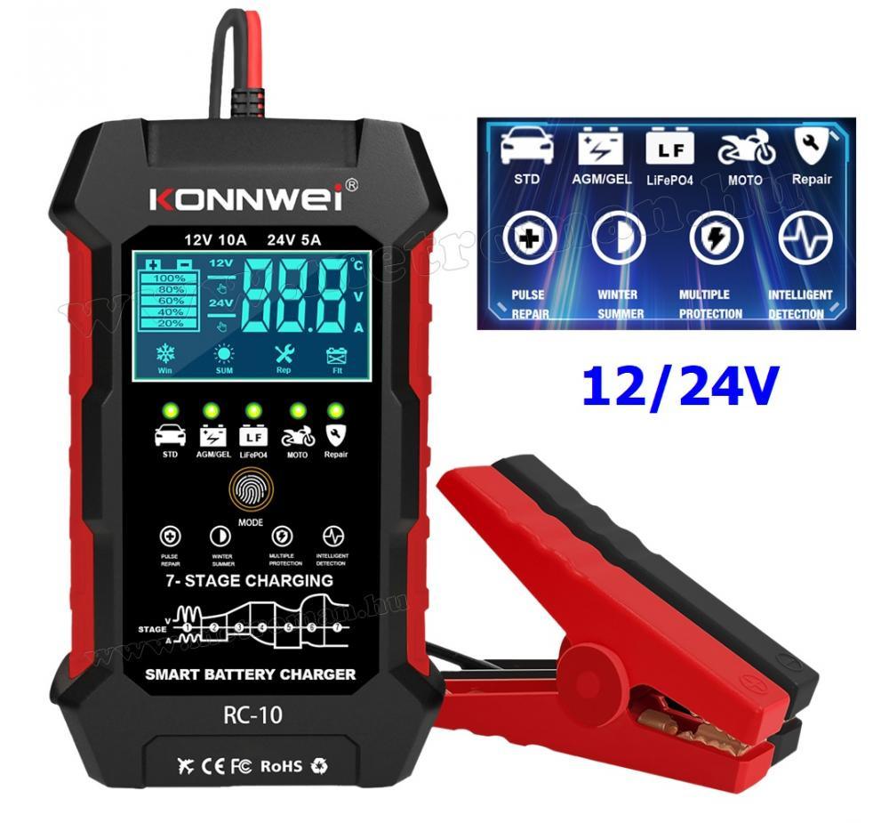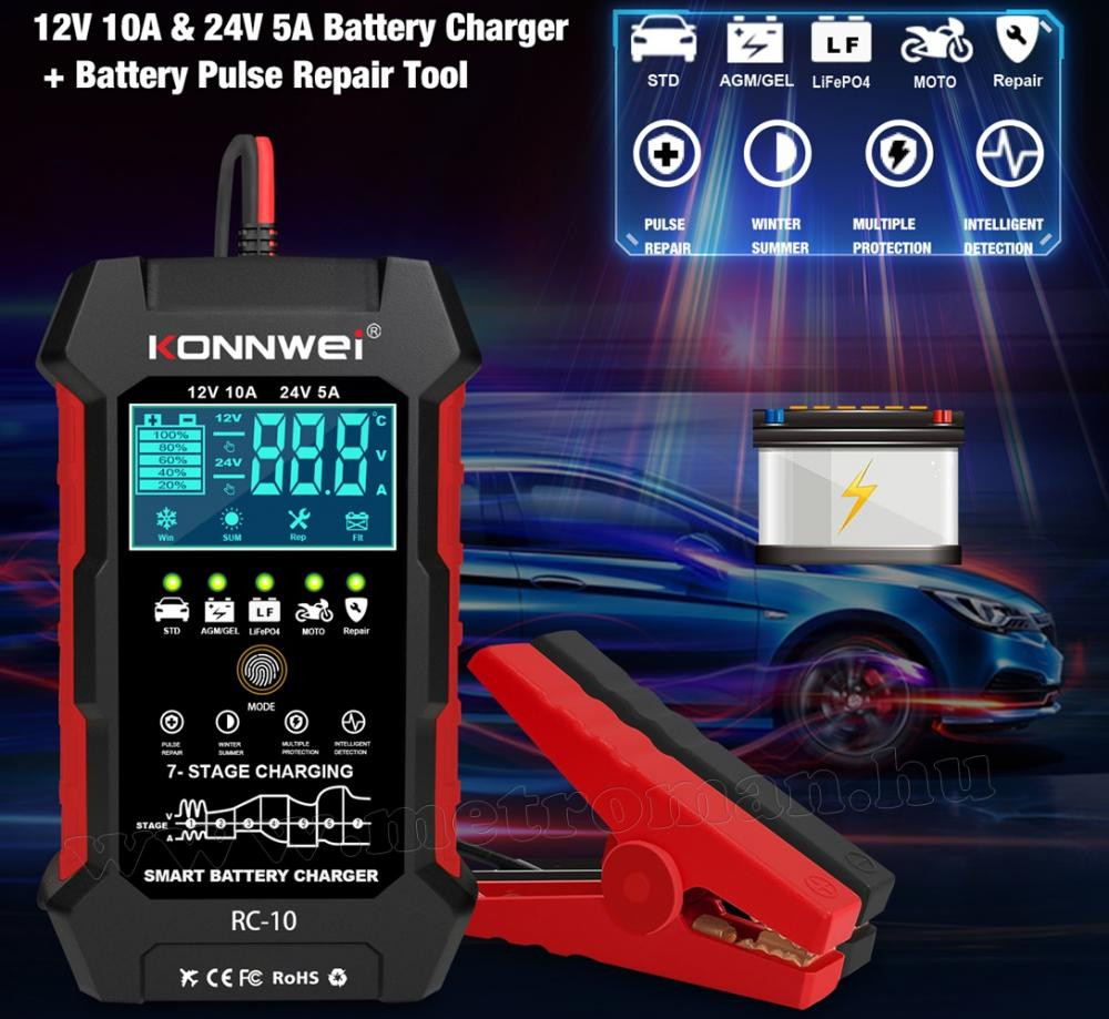 Automata Intelligens akkumulátor töltő, csepptöltő és regeneráló Konnwei RC-10 12V/24V