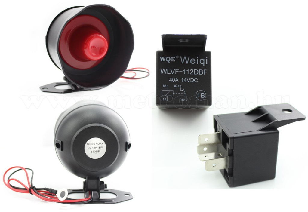 • 1db 6 tónusú sziréna (12VDC - 20W)