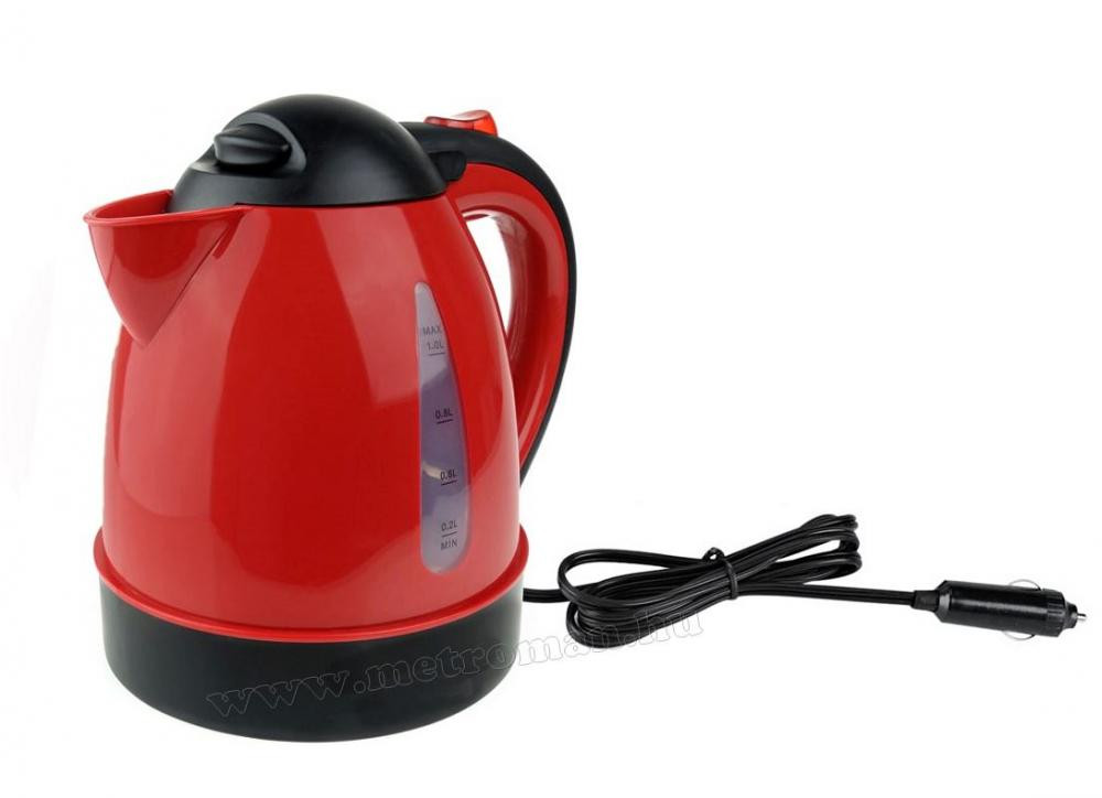 12 V autós szivargyújtó csatlakozóról használható vízforraló, mely kitűnően használható autóban, hajóban vagy lakókocsiban is 12 Voltos akkumulátorról.