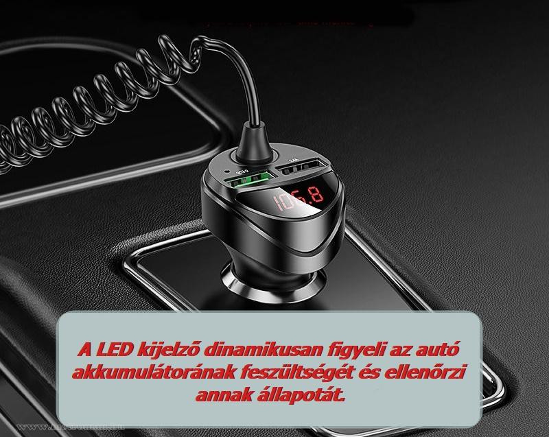 M7401A Autós USB-A / USB-C / microUSB / iPhone töltő és feszültségmérő
