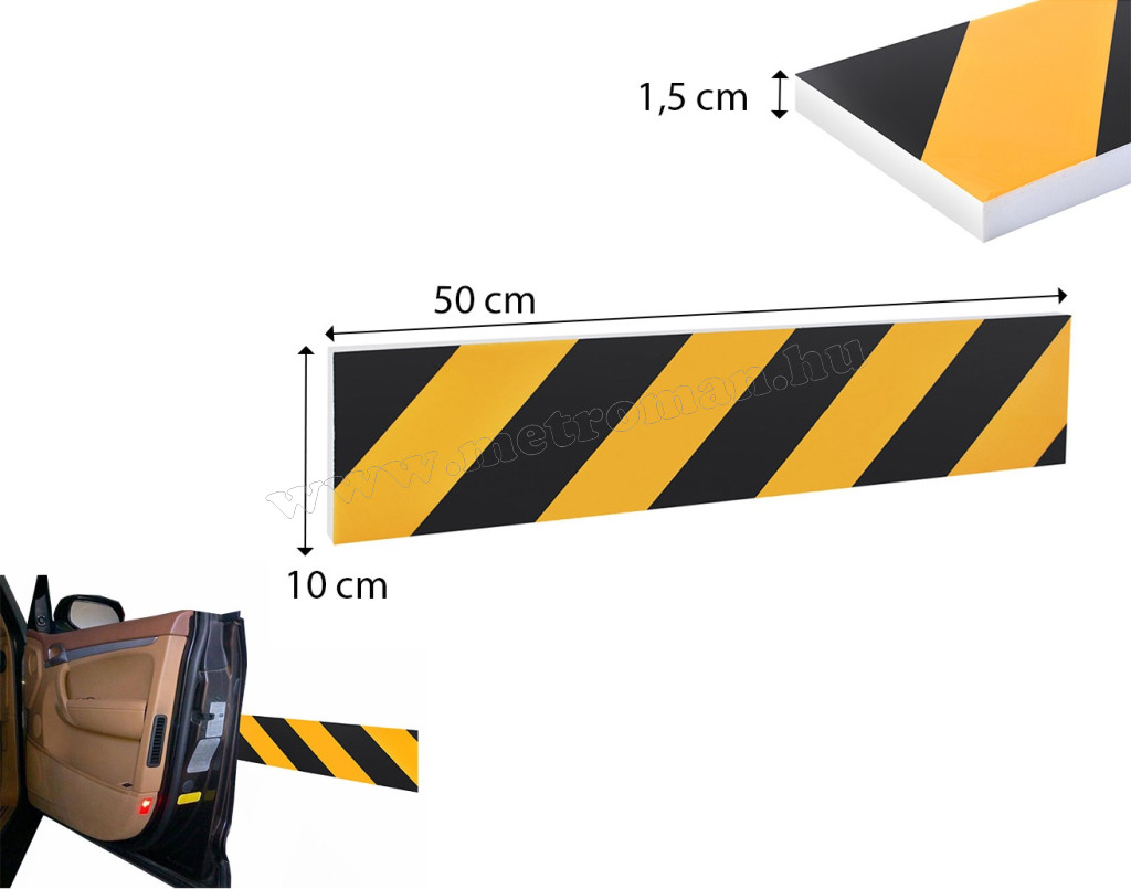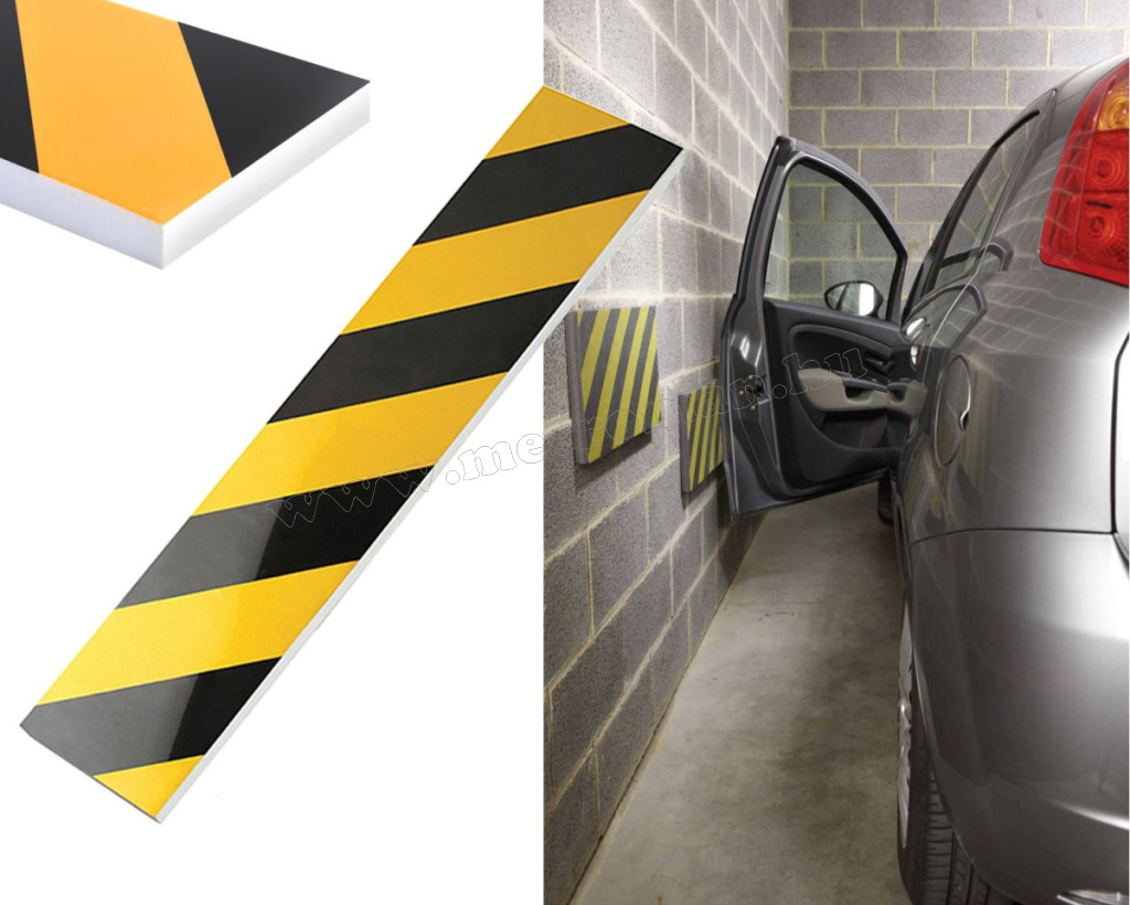 Erős, kemény habszivacs alapanyagú ütközésvédő figyelemfelkeltő fényvisszaverő csíkkal. Praktikus megoldás szűk garázsoknál ajtó leverődés ellen vagy kisebb ütközések, horzsolások megakadályozására.