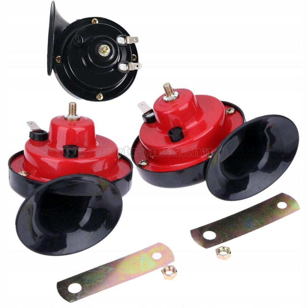 Univerzális 12 Voltos nagy hangerejű csiga kürt. A csomag két darab kürtöt tartalmaz, melyek különböző frekvenciájú hangot bocsátanak kis. Alkalmas autók, hajók, munkagépek kiegészítő kürtjének is.
