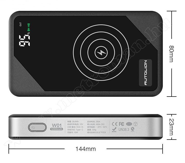 Autós indításrásegítő hordozható akkumulátor vezeték nélküli telefon töltő 81ALW01