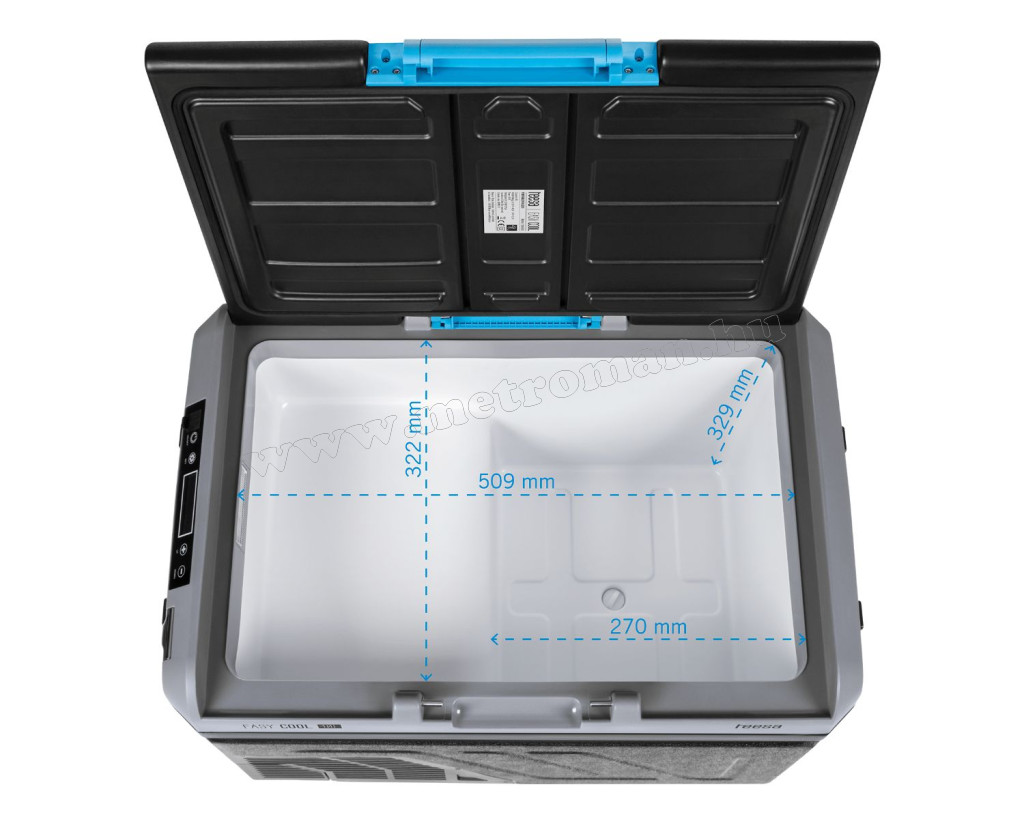 A hűtőszekrény teteje levehető és mindkét oldalról nyitható, így a használat rendkívül egyszerű különféle helyzetekben. Ezáltal az élelmiszerekhez való hozzáférés gyors és egyszerű, még szűk autóban vagy kempingezés közben is. A levehető fedél a tisztítást és a teljes rekesz optimális kihasználását is megkönnyíti.