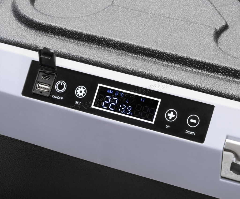 Az intuitív LED kijelző és az érintőképernyős kezelőpanel lehetővé teszi a hőmérséklet és az üzemmód pontos beállítását. A panel automatikus zárral, Eco móddal és a jármű akkumulátorának lemerülése elleni védelemmel rendelkezik. A kezelés egyszerű, gyors és modern, így minden felhasználó könnyedén vezérelheti a hűtőszekrény funkcióit.
