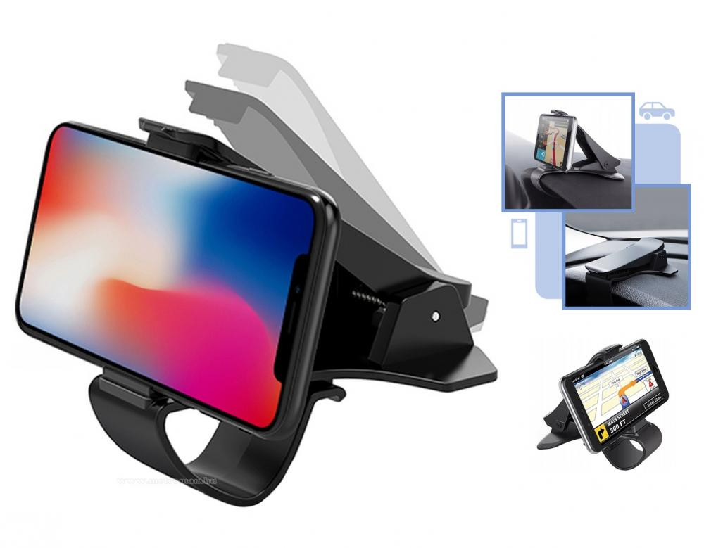 Autó műszerfalára csíptethető praktikus telefontartó, mellyel telefonunk mindig szem előtt lesz, így ideális nem csak telefonáláskor hanem pl. navigáció használatakor is.