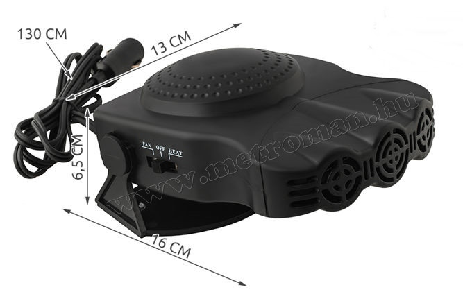 Kérjük vegye figyelembe, hogy a hősugárzó teljesítménye 150 Watt, ezért utastér fűtésre nem alkalmas. A melegedési ideje kb. 1-1,5 perc és a környezeti hőmérséklettől függően meleg vagy langyos levegő fújására képes.