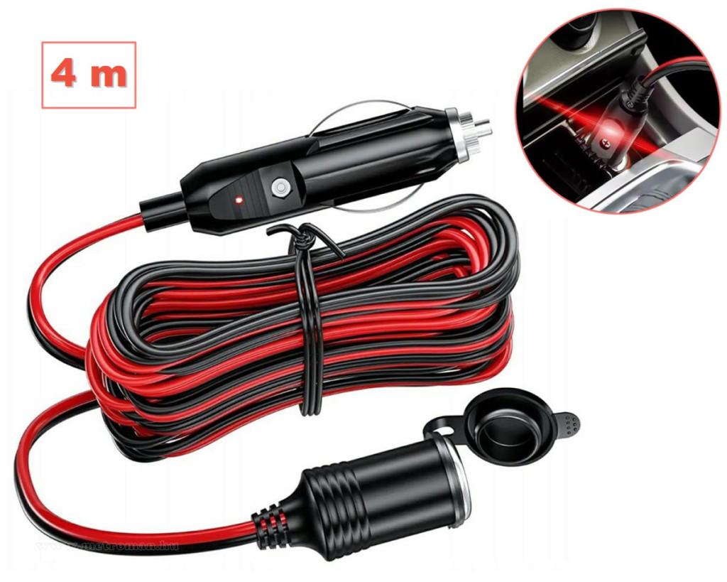 Autós 4 méteres szivargyújtó hosszabbító