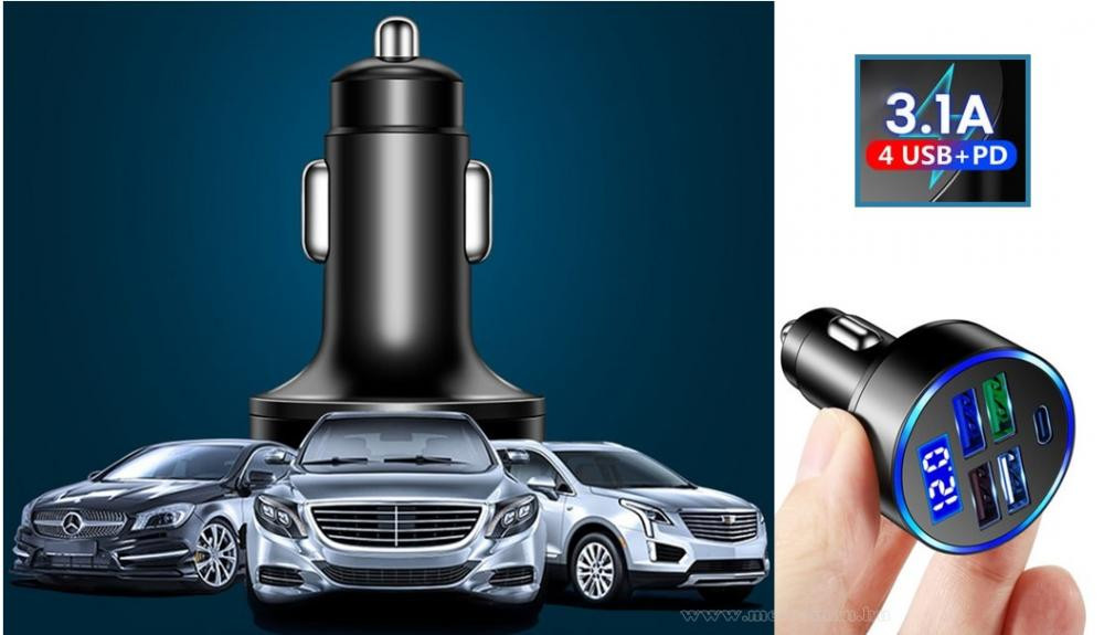 Autós szivargyújtó USB töltő voltmérővel, mellyel ellenőrizheti az akkumulátor feszültségét is. A szivargyújtós telefontöltő 4 db USB + 1 USB-C porttal rendelkezik, így egyidejűleg öt készüléket is tölthet.