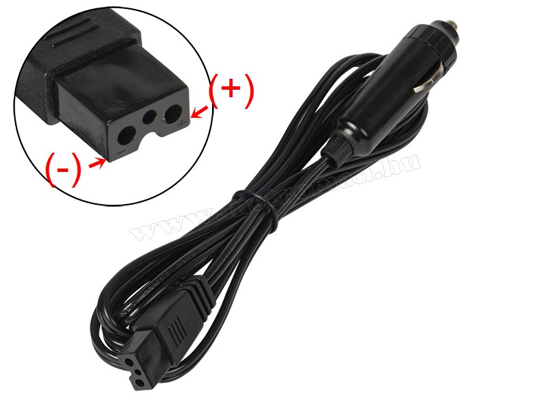 12 V szivargyújtós táp csatlakozókábel elektromos hűtőtáskához, hűtőládához. A kábel univerzális, és számos hűtőmodellhez kompatibilis. Annak érdekében, hogy biztosan illeszkedjen, ellenőrizze a dugó formáját, valamint a "-" és "+" polaritásjelzéseket.