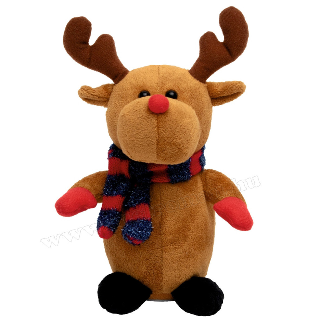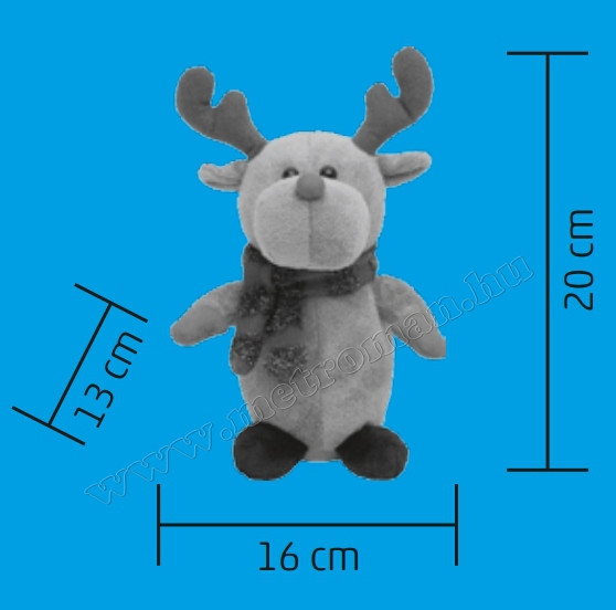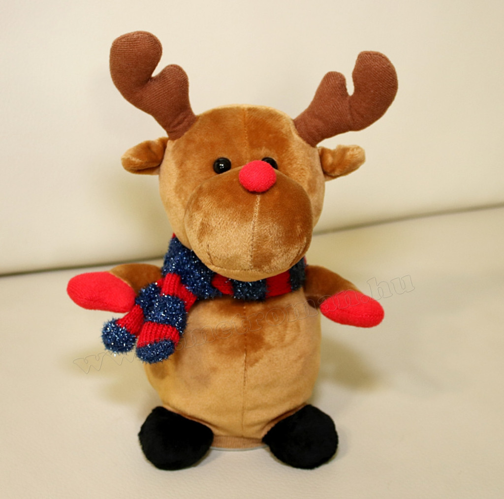 Kedves, aranyos plüss játék rénszarvas.  A rénszarvas rögzíti, majd visszamondja az elhangzottakat, miközben közben fel-le mozog.