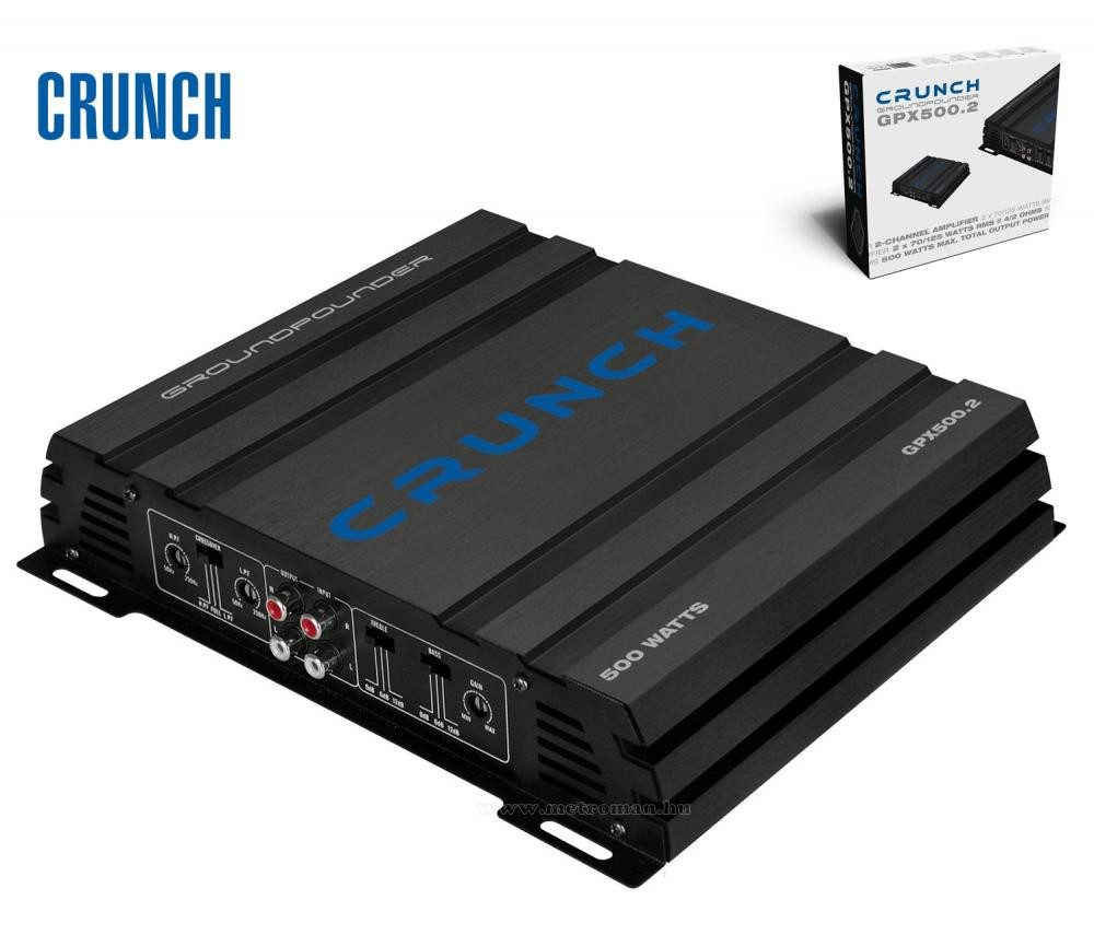A Crunch GPX500.2 2 csatornás autós erősítő, felül áteresztő és alul áteresztő szűrőkkel, kompakt mérettel rendelkezik.