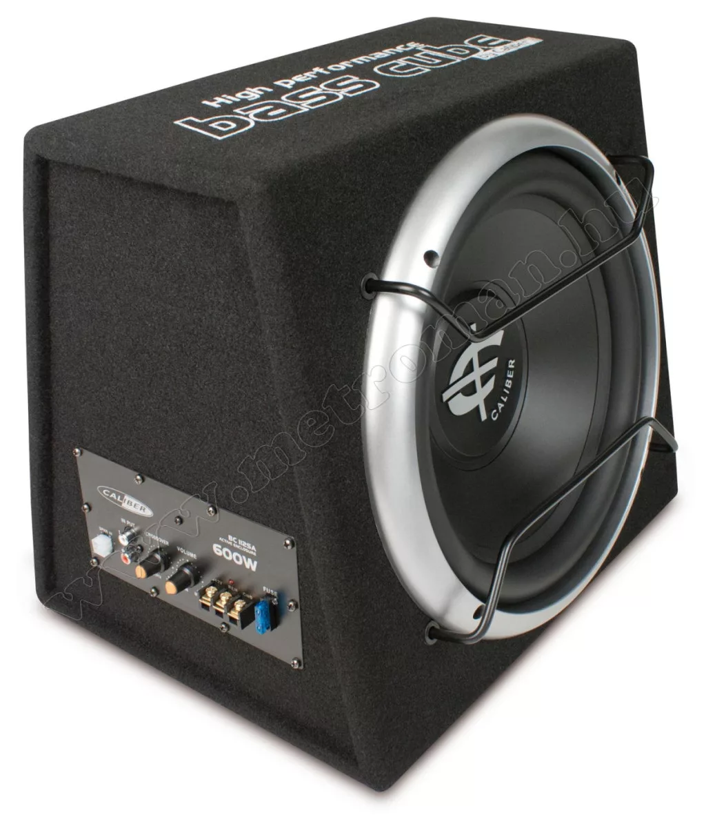 Caliber BC112SA aktív mélyláda 30 cm membránnal, 200W folyamatos és 600W maximális teljesítménnyel rendelkezik. Hangszóró jelszint és RCA jelszint bemenet. Állítható low-pass filter 35 Hz - 200 Hz.