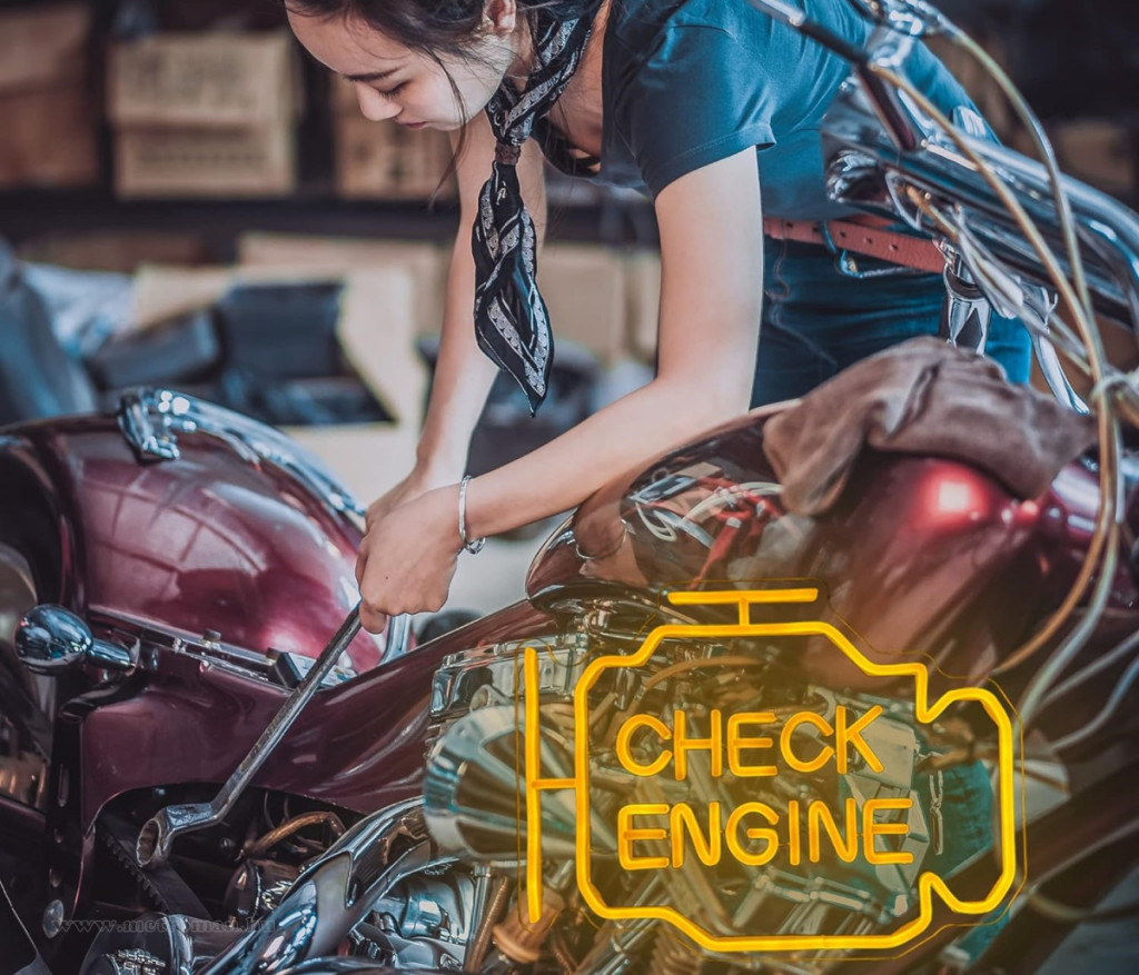 • Motor alakú dekoratív LED lámpa CHECK ENGINE felirattal.