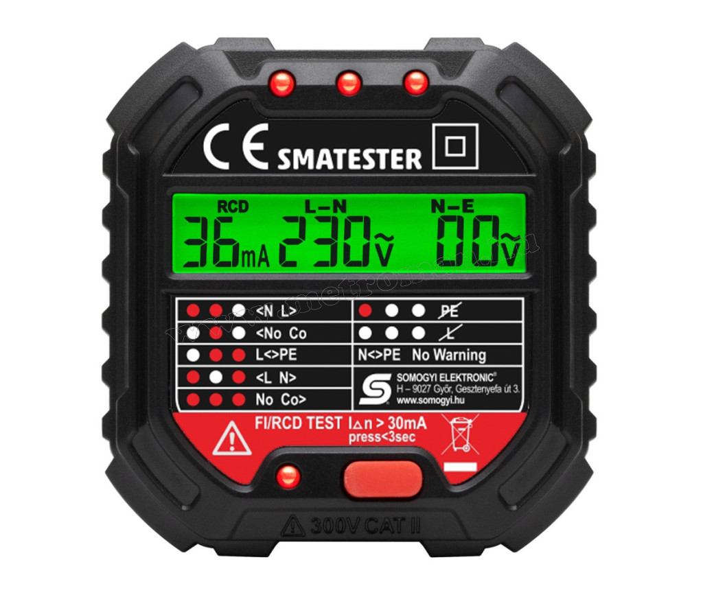 A készülék több mint egy egyszerű teszter, ez az eszköz voltmérőként is funkcionál, lehetővé téve L-N és N-E feszültségek, valamint RCD mA áramok leolvasását.
