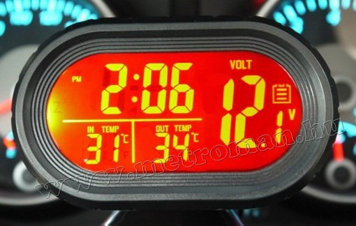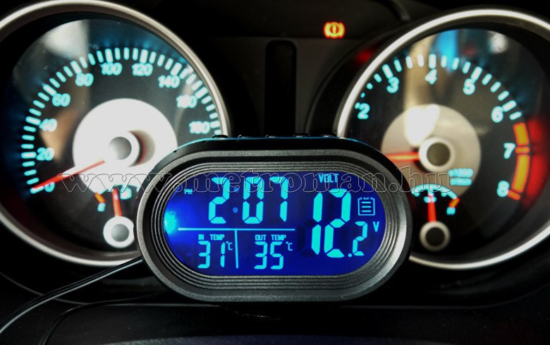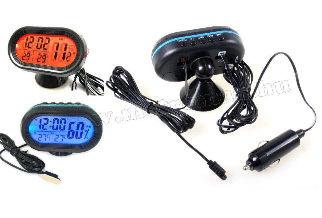 Digitális autós LCD külső-belső hőmérő és óra Voltmérővel M7009VK