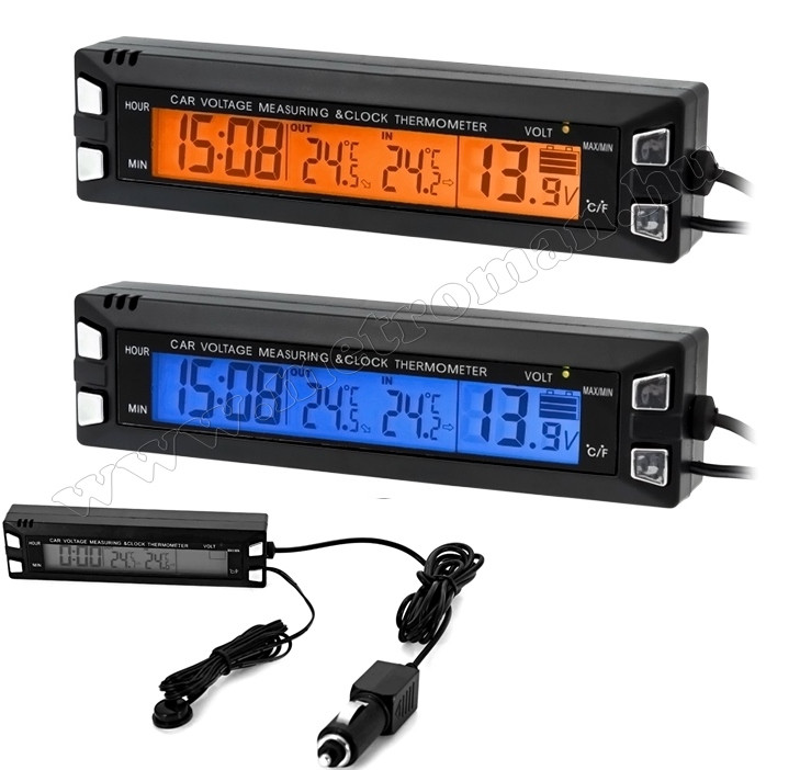 Digitális autós külső-belső hőmérő és feszültség mérő MEC-30