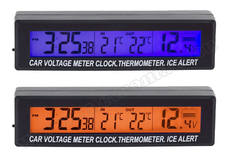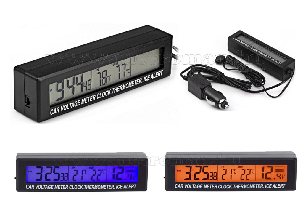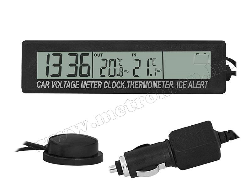 Digitális autós külső-belső hőmérő és feszültség mérő MEC-88