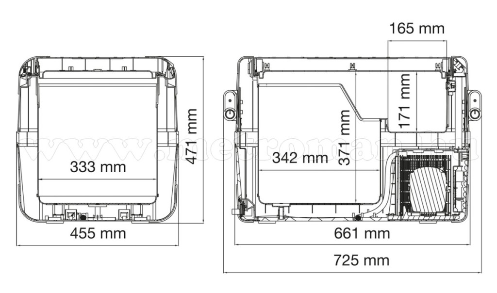 Űrtartalom: 46 liter (ebből 8 liter frissárúnak)