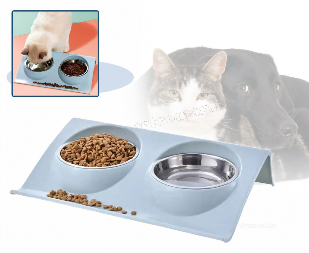 Dupla etetőtál kutyáknak macskáknak kék MDA119