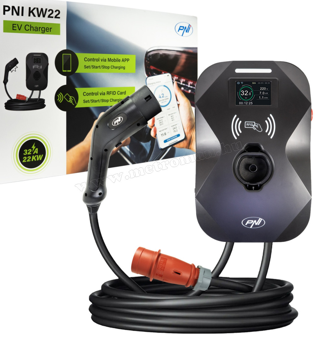 PNI KW22 – 22kW-os intelligens elektromos autó töltő állomás - EV töltő otthonra és céges telephelyekre
