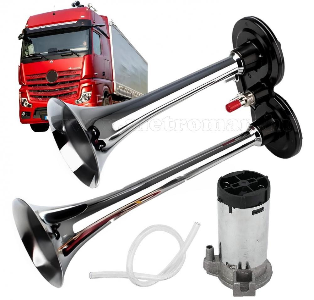 Extra nagy hangerejű dupla hajókürt elektromos kompresszorral