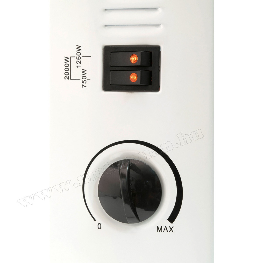 - 3 fűtési fokozat: 750/1250/ 2000 W